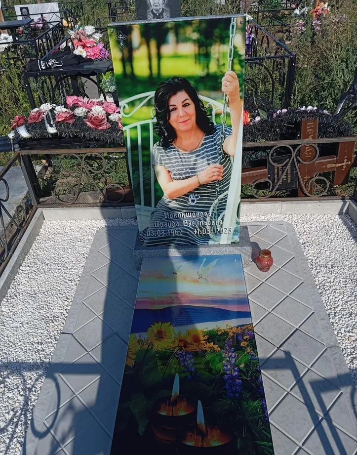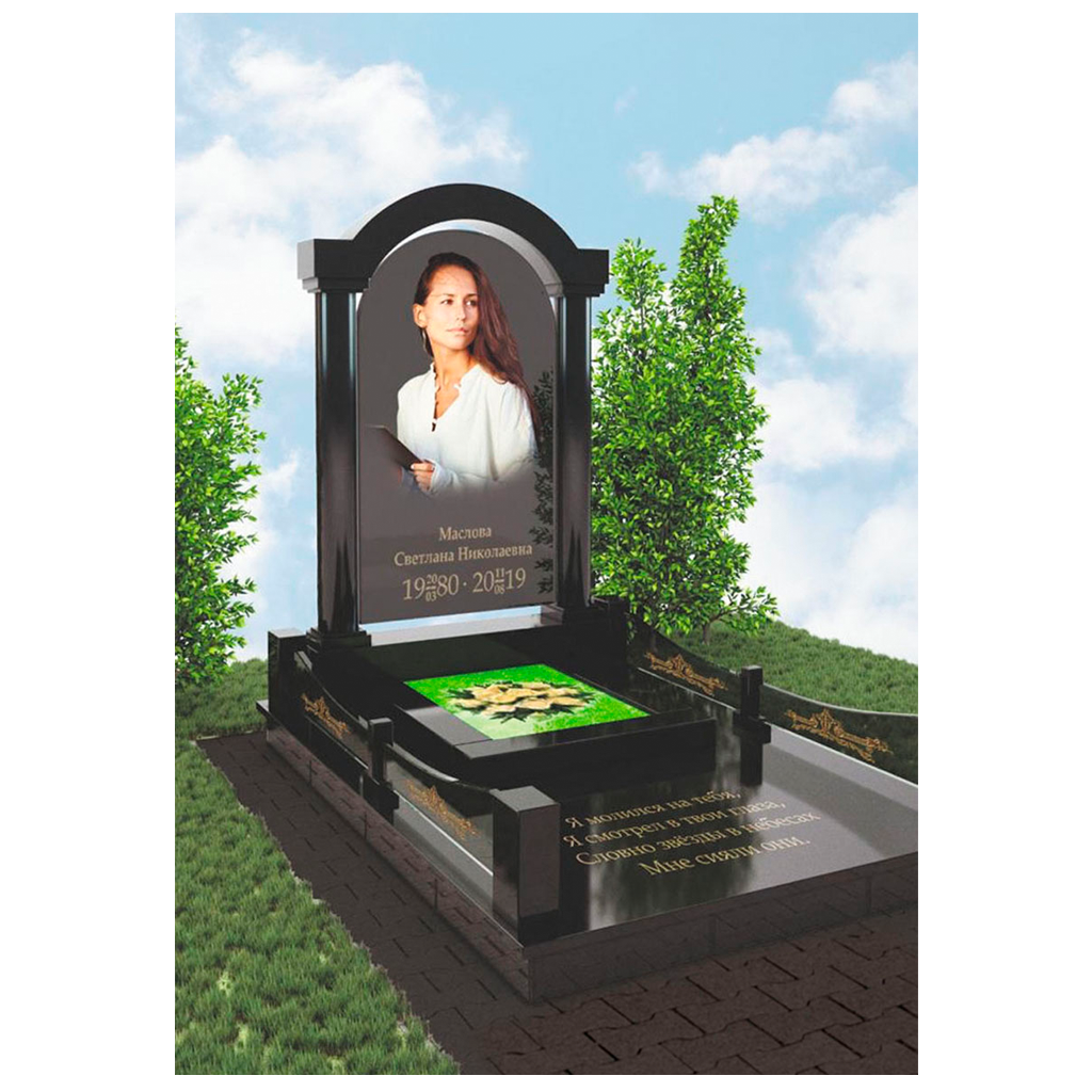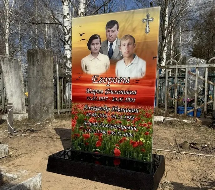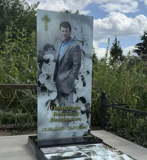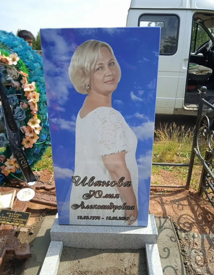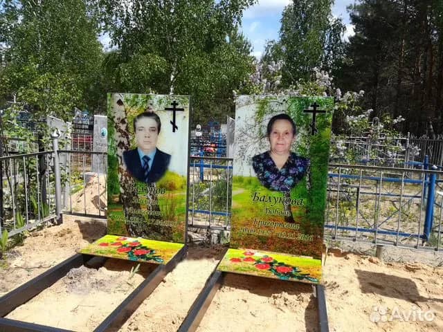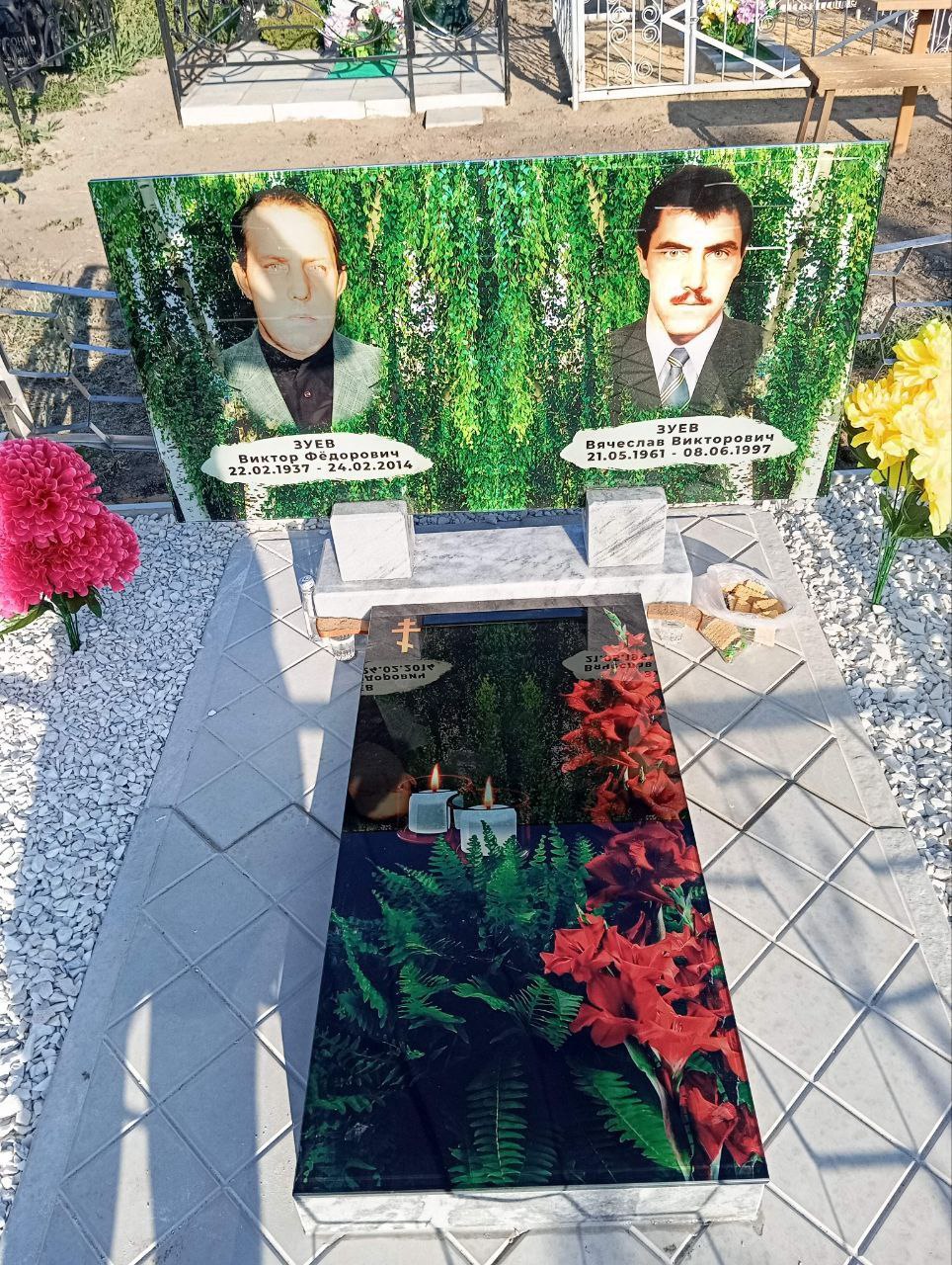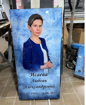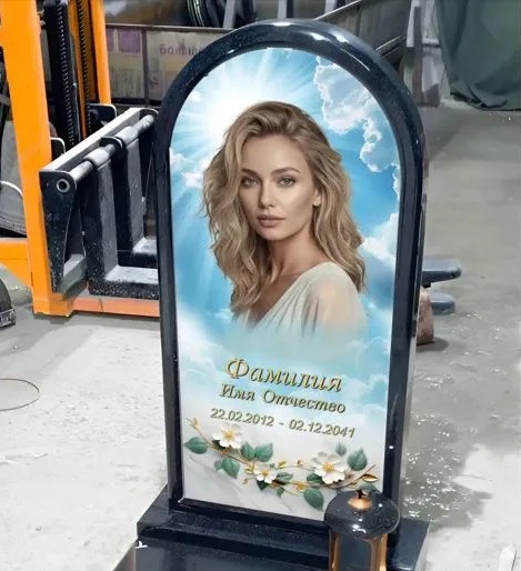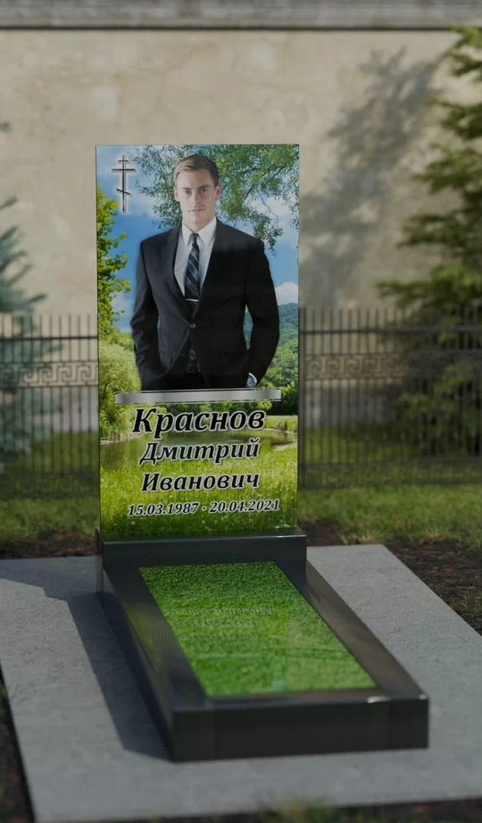 Самый реалистичный памятник на кладбище из гранита и закаленного стекла с печатью керамическими красками и гарантией 40 лет.