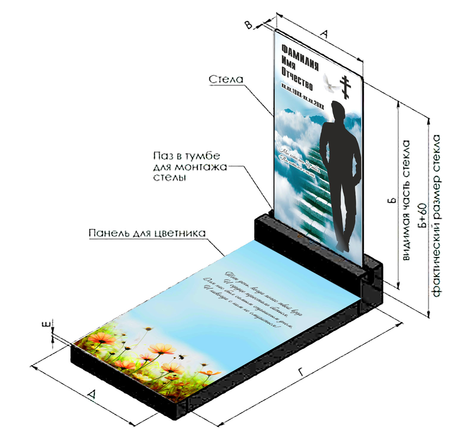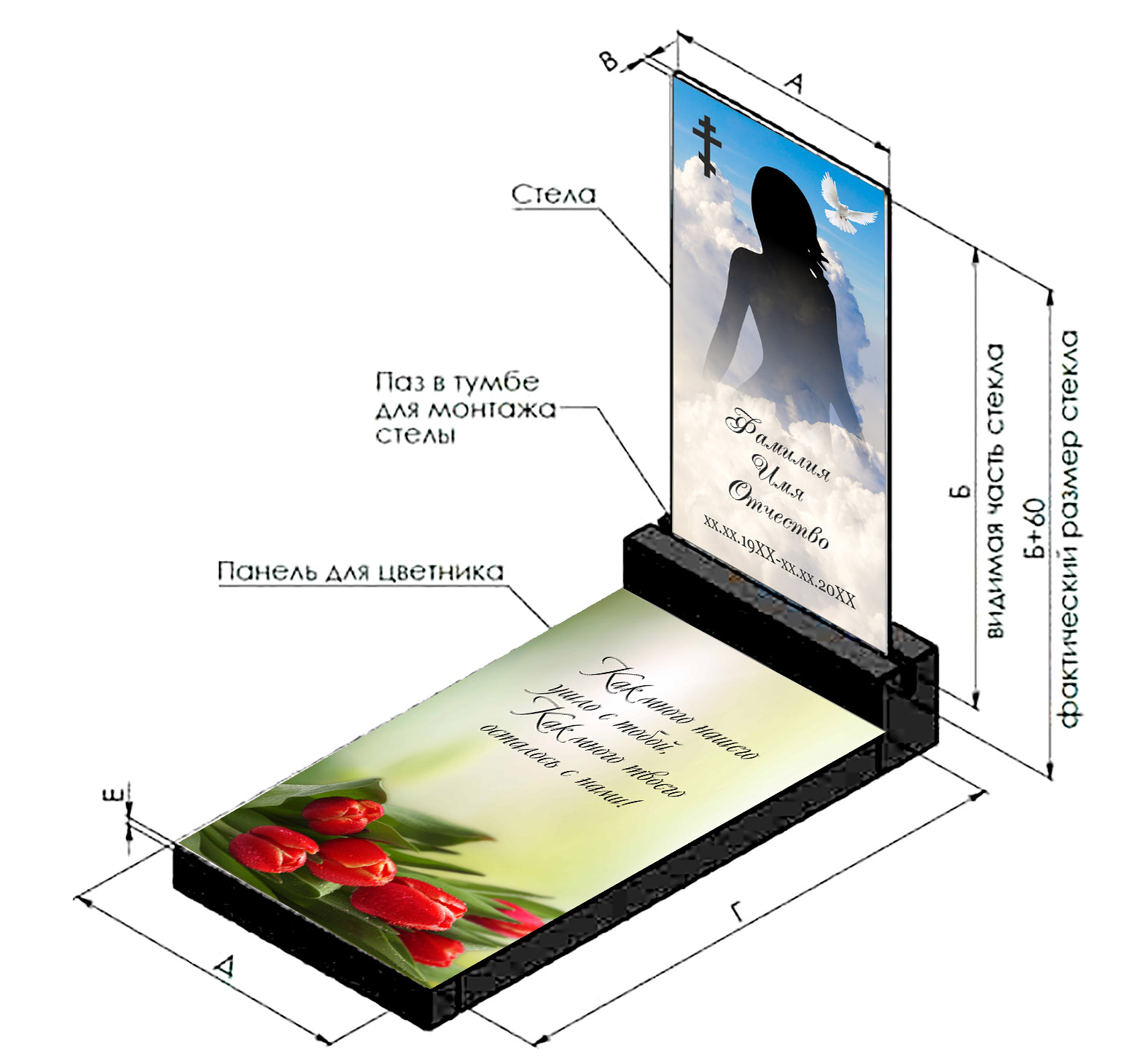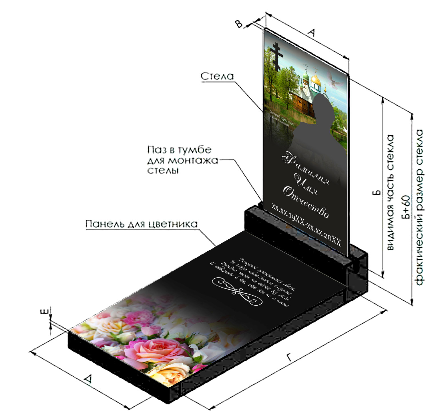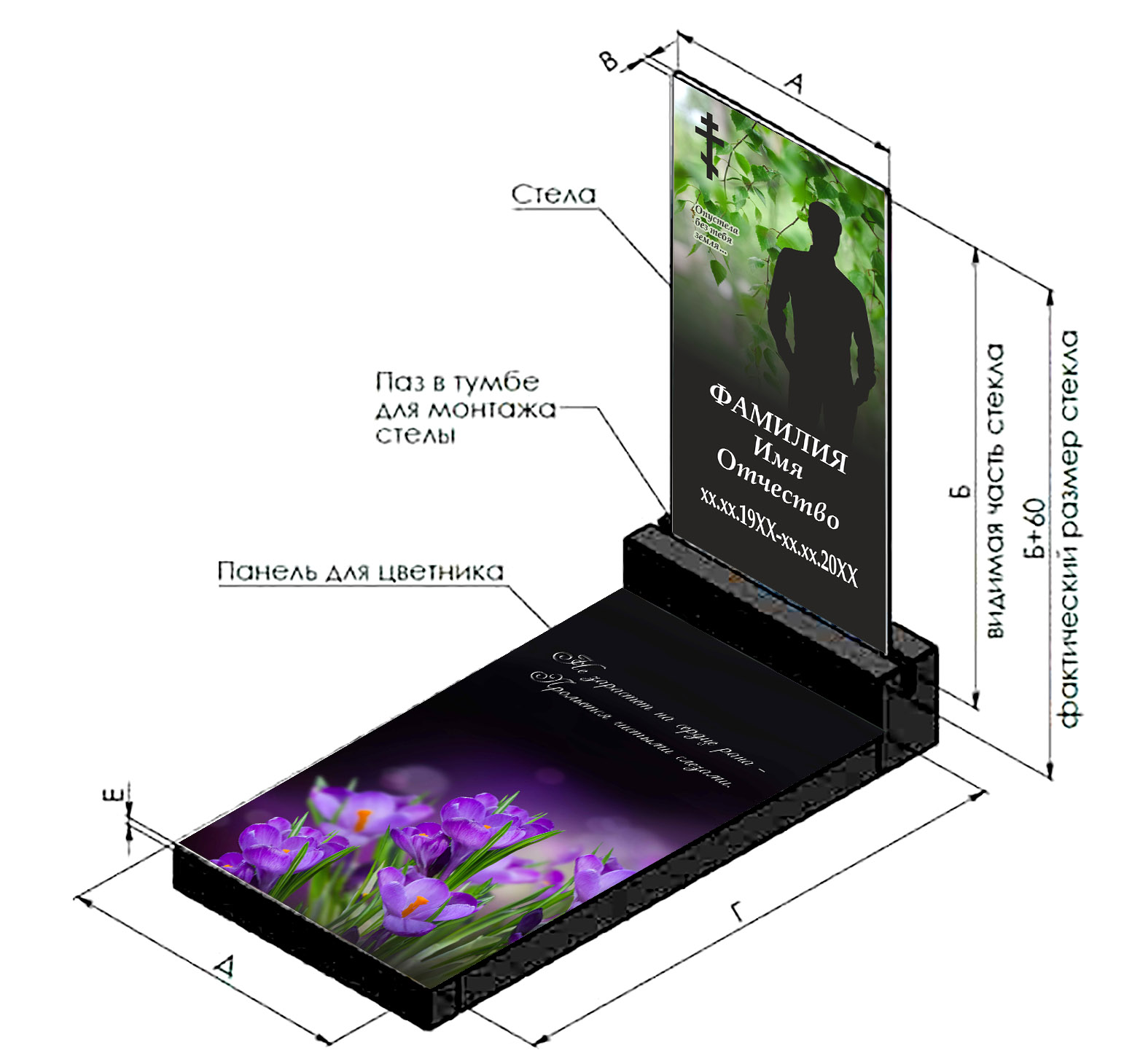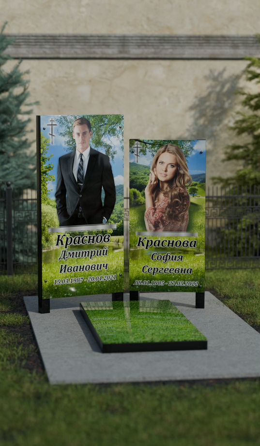 Стеклянные панели для памятников, надгробий, ограждений от производителя. Изготовим в нужный размер портрет, надгробие, панель для стелы и цветника из безопасного ударопрочного стекла. Стеклянные памятники — это современное и изысканное решение, которое сочетает в себе эстетическую легкость и долговечность. Наши стеклянные памятники изготавливаются с использованием керамических красок, что обеспечивает яркость и стойкость изображения на протяжении долгих лет. Каждый памятник проходит тщательную проверку качества и имеет гарантию 40 лет, что подтверждает нашу веру в продукт и заботу о вашем спокойствии. Стеклянные памятники не требуют обязательного регулярного ухода. Они не капризнее гранитных памятников и поэтому мыть их можно не чаще 2х раз в год. Алгоритм мытья стандартный: обилие воды, мягкая ветошь и средство для мытья стекол.